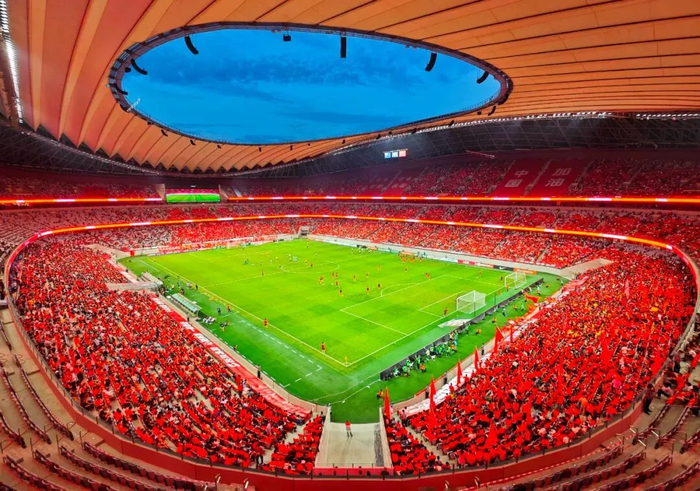 西安国际足球中心坐落于西咸新区沣东新城,是西北地区首座且唯一通过国际足联和亚足联双重认证的专业足球场,也是西安打造“赛事名城”的核心地标。场馆于2025年9月正式投用,建筑面积26.8万平方米,设6万固定座席,配套两座国际级训练场地,不仅配备顶级音响等一流设施,更有地铁16号线直达,交通便捷。其硬件标准可满足顶级赛事办赛需求,具备承办世界杯等国际顶级足球赛事的能力,为球迷观赛、球队训练提供了高品质保障。