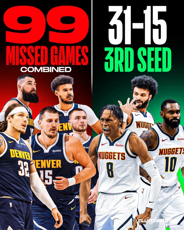 华体会体育-4主力+瓦兰合计缺席99场!掘金依旧31胜15负排西部第三! xiaoqiao 2026-03-16 法甲 15 0 约基奇缺席14场;阿隆·戈登缺席23场;布劳恩缺席32场;卡梅隆·约翰逊缺席18场;瓦兰缺席12场。